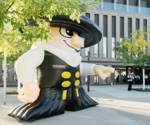 Das Maskottchen begrüßt die zahlreichen Kluftträger der gut 300 Gäste schon vor der Stadthalle Reutlingen zum Landesholzbautag 2025. Fachlich top, politisch relevant und mit spürbarer Begeisterung: Am Freitag, 19. September 2025, traf sich der baden-württembergische Holzbau in und um unsere Stadthalle Reutlingen zum Landesholzbautag 2025. Das Branchenevent im zweijährigen Turnus vereinte Zimmererhandwerk, Politik und Planende zum Dialog über Klimaschutz, bezahlbaren Wohnraum und die Zukunft des Holzbaus. weiterlesen